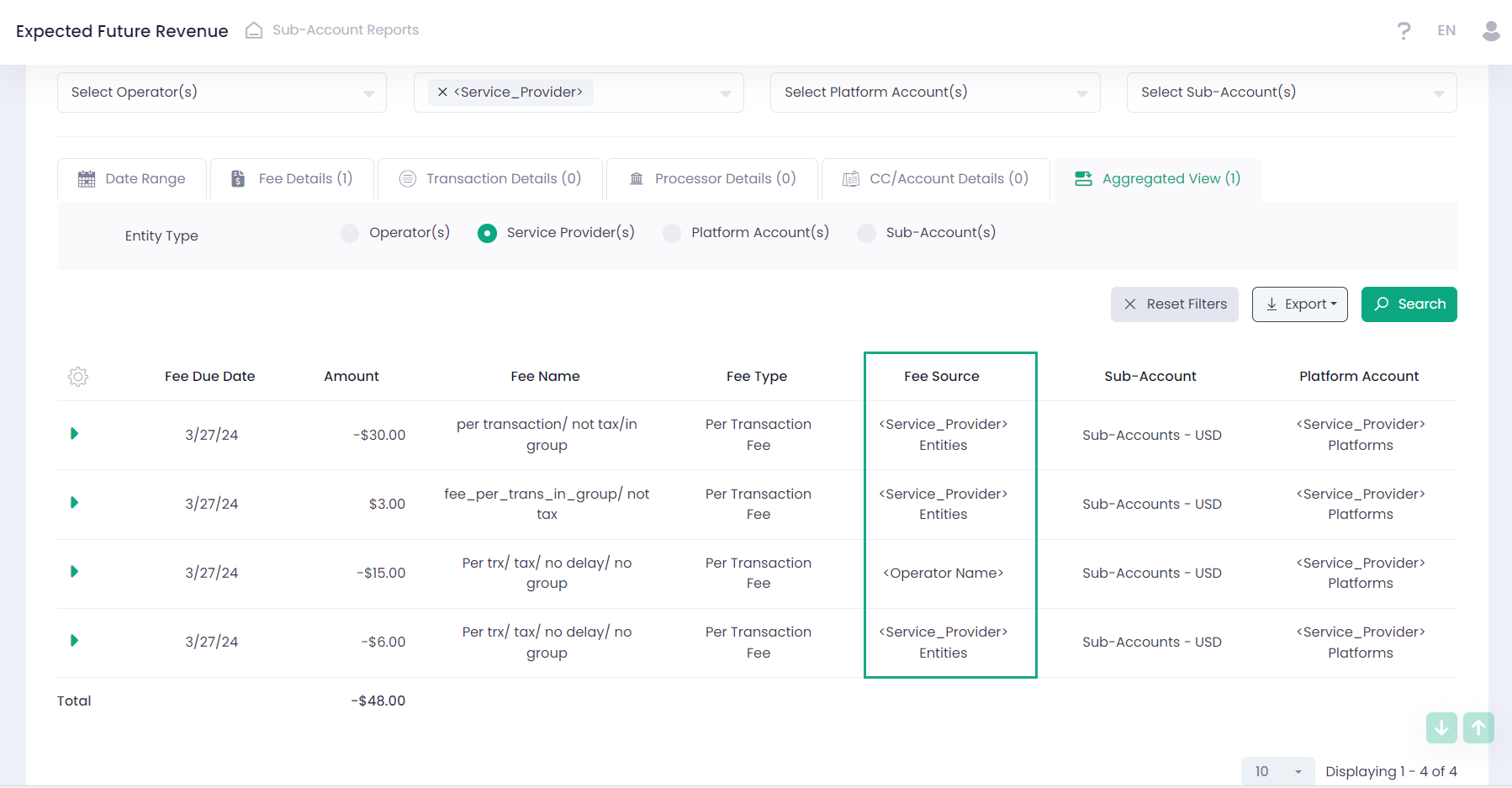 For Commissions And Fees report, Incoming Fees reports and Expected Future Revenue report by Fee Source.