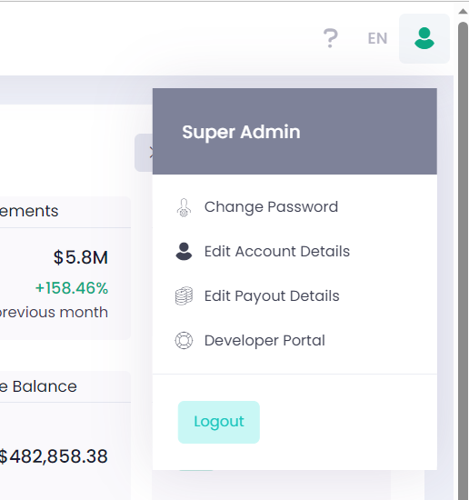 In the User Menu located in the upper-right corner of the Back-Office screen you can: