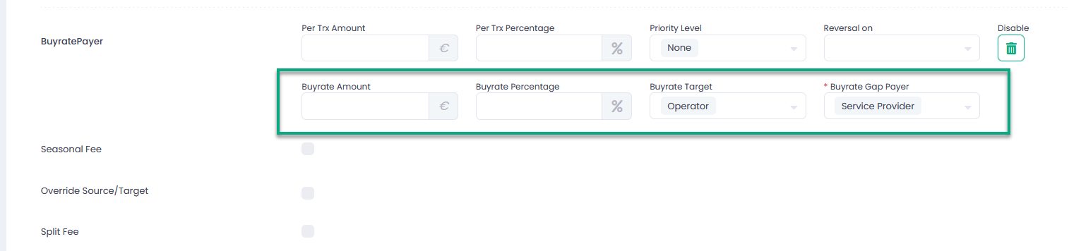 | Per Trx Percentage | Fee as a percentage of the transaction amount |