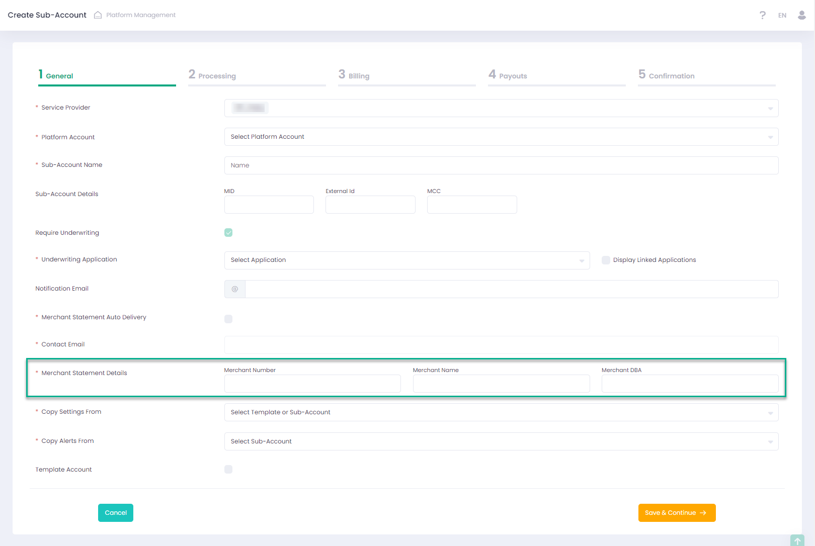 | Template Account | Activate if you want to create a template Sub-Account | Not required |