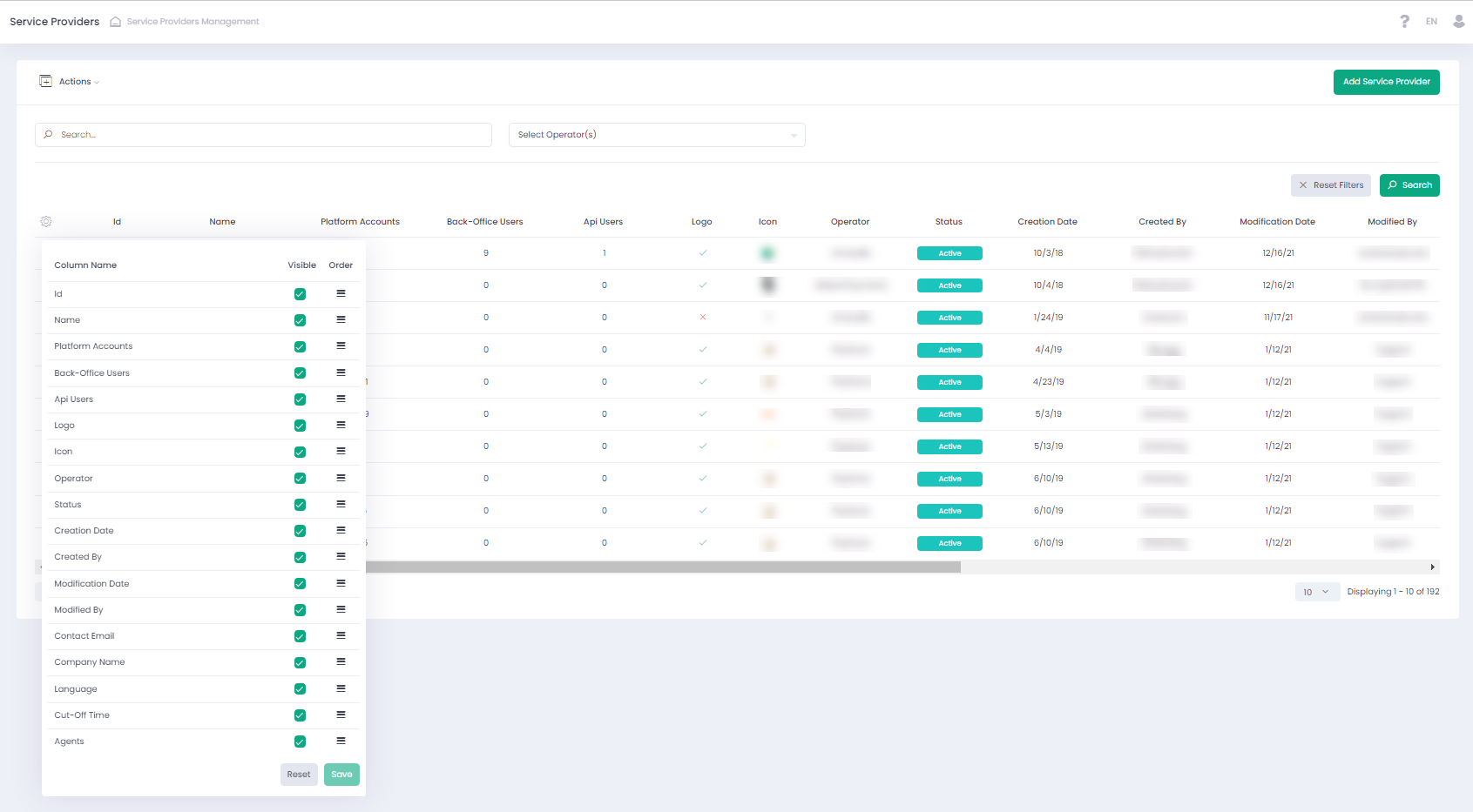 | Service Provider Name | Service Provider Company Name that will be displayed in the Back-Office | Required |