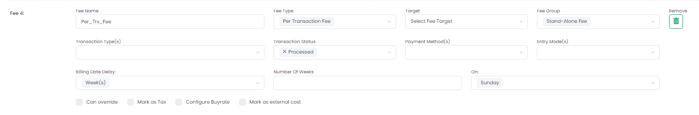 - Select Transaction Status – create fees for both successful and/or declined transactions. Not relevant for Scheduled Fee and Fee on Top of Fee.